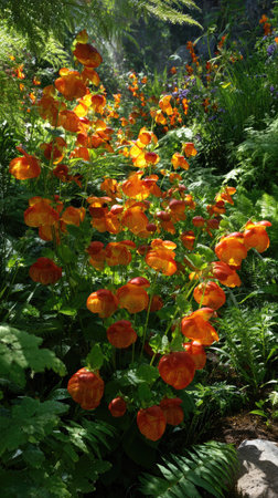 Colorful flowers with unique shapes and patterns fill a garden scene, showcasing nature's beauty.
