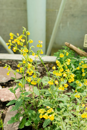 Saint Gallen, Switzerland, May 9, 2025 Calceolaria Plectranthifolia plant at the botanical garden