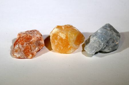 Calcite pieces with red, yellow, and blue nuances caused by the presence of smaller amounts of other minerals.
