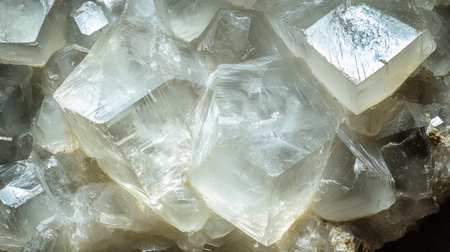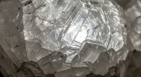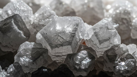 Detailed macro shot of sharp, crystalline mineral or salt formations with light reflecting off facets.