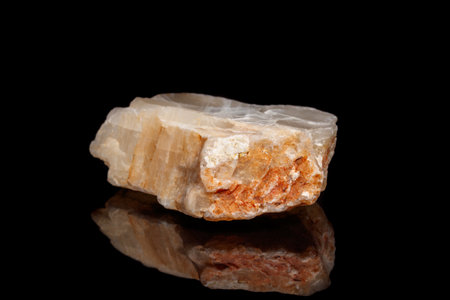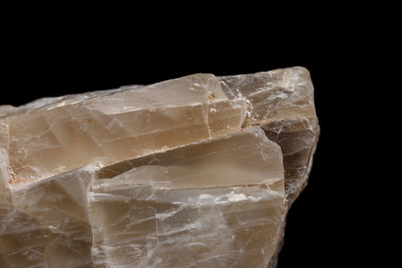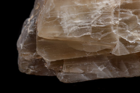 Macro mineral stone moonstone a black background close up