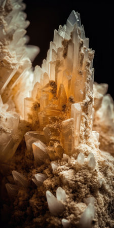 This image showcases a breathtaking crystal formation, highlighting its intricate details and the play of light across its surfaces. The composition emphasizes the natural beauty and geological wonder of the crystals.