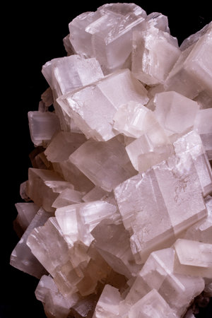 Macro stone Calcite mineral on a black background close up