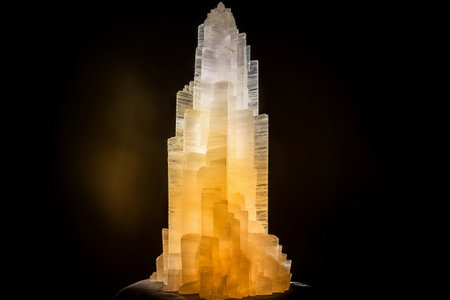 Ice sculpture in the shape of a skyscraper at night. Artwork decoration. Selective focus