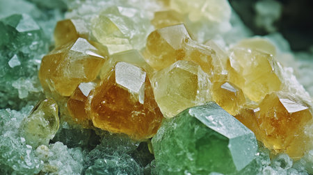 Closeup shot of colorful calcite crystals, geological background