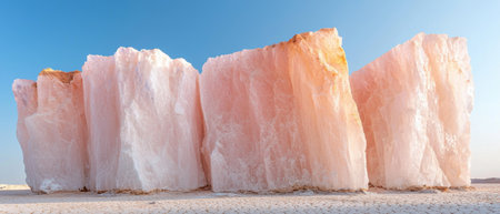 Massive pink salt crystals in desert landscape