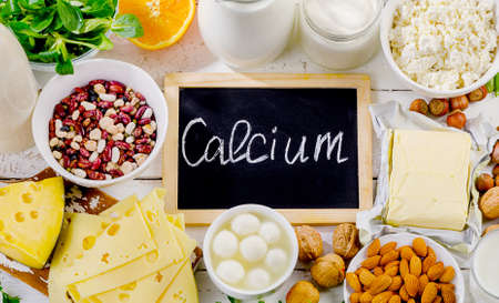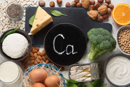 Calcium Rich Foods for Healthy diet eating and For Immune Boostig. Top view, flat lay