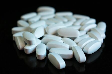 white pills with bottle black background