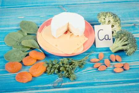 Calcium in food. Natural organic foods high in calcium. Time for health.
