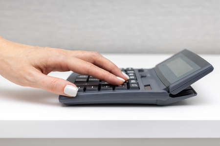 Young women of hand are calculating individual income tax to send information to government agencies. Using a calculator.