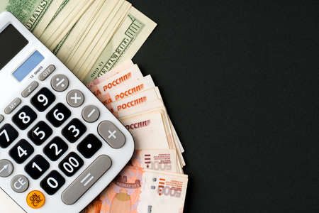 Calculator with US Dollars and Russian Rubles money