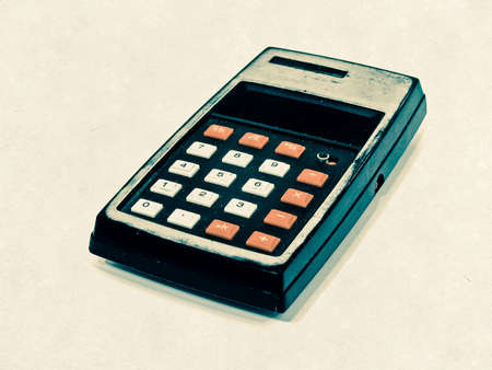 Close-up of an old dusty calculator. Electronic equipment for counting and calculations. Selective focus