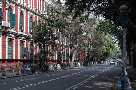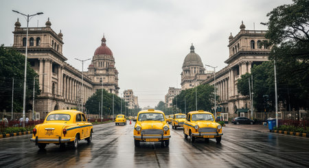 KOLKATA, INDIA - 22 Oct 2016: Taxis line the side of tourist hotspot Sudder Street on the morning of October 22, 2016 in Kolkata (Calcutta), India