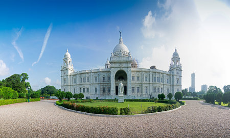 Beautiful panoramic image of Victoria Memorial, Kolkata , Calcutta, West Bengal, India . A Historical Monument of Indian Architecture. Built to commemorate Queen Victoria's 25 years reign in India.