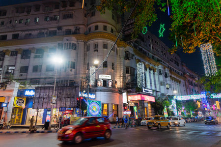 Park Street,Kolkata, India - 12th November 2020 : Park street area is decorated with diwali lights for the occassion of Diwali or deepabali. It is the fetival of light, good over darkness, evil.