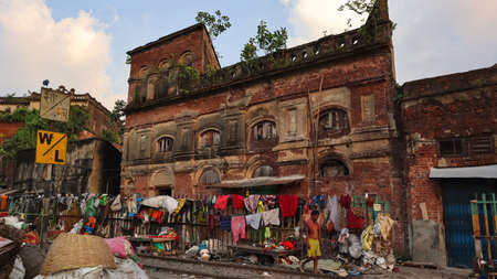 Old ruined houses of on the street of Kolkata, West Bengal, India.