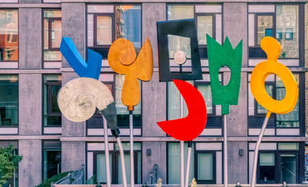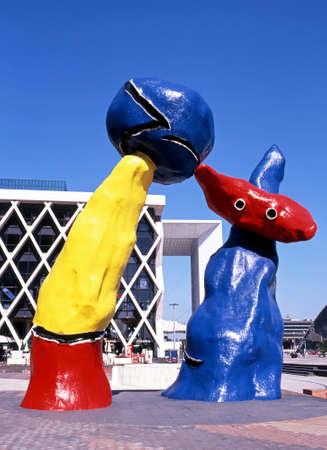 Miro sculptures near the Grand Arch at La Defense, Paris, France, Western Europe.