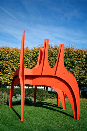 Washington, D.C., USA - November 11, 2017: Alexander Calder’s sculpture Cheval Rouge (constructed in 1974), made of sheet metal. It is installed in National Gallery of Art Sculpture Garden on the National Mall.