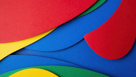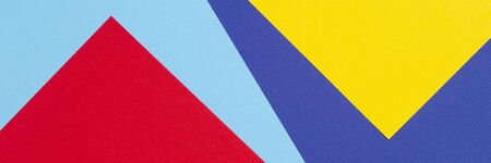 Creative abstract blue, red and yellow color geometric paper compositon background, top view