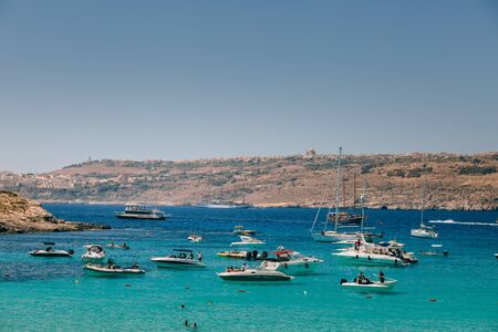 Sailing yachts in the beautiful Blue Lagoon on Comino Island