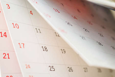 Calendar page flipping sheet close up blur background business schedule planning appointment meeting concept