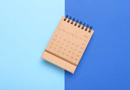 close up of calendar on the blue table background, planning for business meeting or travel planning concept