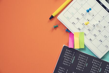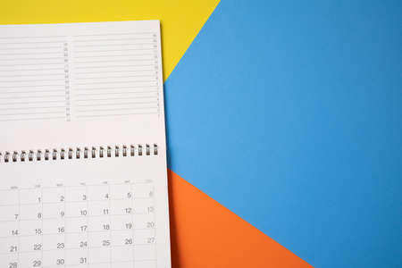 close up of calendar on the colorful table background, planning for business meeting or travel planning concept