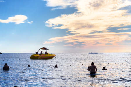 Tenerife, Spain - September, 2021: People at beach in Puerto de la Cruz, Tenerife, Canary Islands