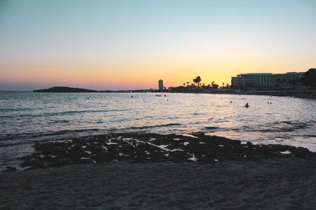 View of a beach in Ayia Napa during the sunset
