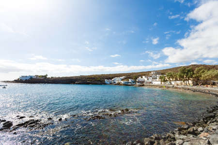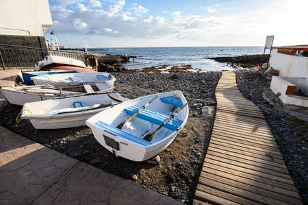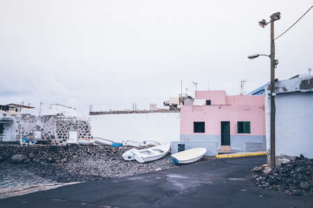 Beautiful village in Canary island with white houses with boats in the atlantic ocean