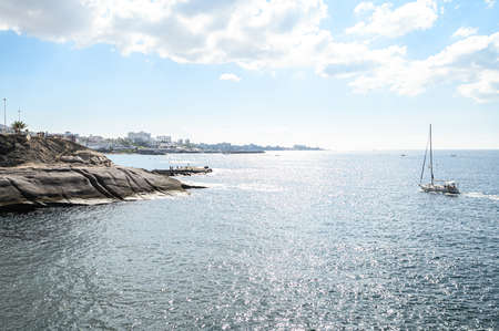 Costa Adeje, Tenerife, Spain - July 28, 2013: The islands of Tenerife is a resort for tourists. Coast of the sea and hotels on the beach.
