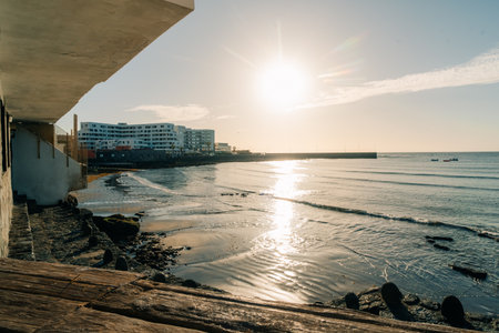 Sea and Building at Sunset in El Medano Tenerife Canary Islands