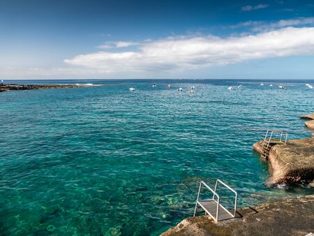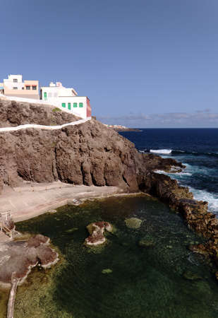 Gran Canaria, calm natural seawater pools in under the steep cliffs of the north coast and separated from the ocean by volcanic rocks,Sardina del Norte area