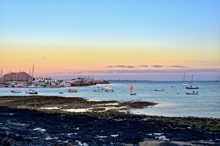Cityscape of Isla Lobos pier in Fuerteventura in summer 2020.