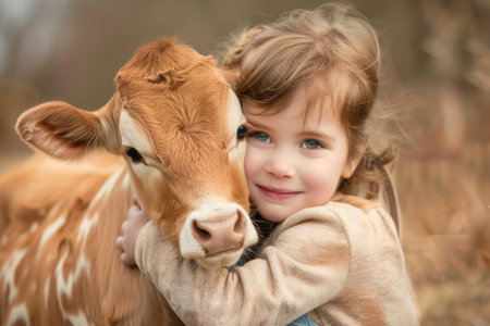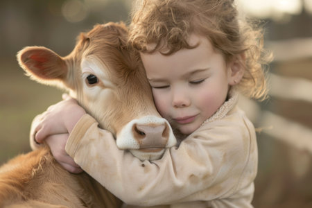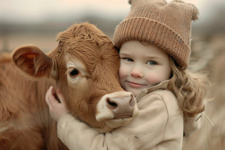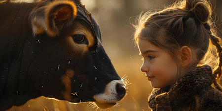 Heartwarming Child and Cow Innocence and Curiosity Showcased. Concept Child Portraits, Animal Photography, Innocent Interactions, Heartwarming Moments