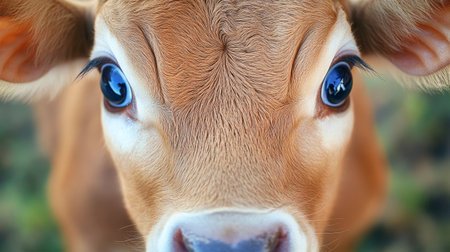 A young calf curiously gazes at the camera, her large sparkling eyes reflecting innocence and wonder in the warm afternoon light.