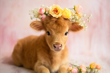 In the nursery of a dairy farm, a young cow calf finds comfort and care. Surrounded by a nurturing environment, it grows under the watchful eyes of the farmers. AI Generative AI.
