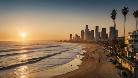 Sunset over the Pacific Ocean in Los Angeles, California, USA