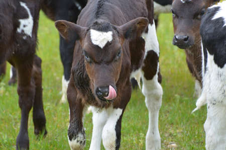 Calf on a dairy farm Pennsylvania Holstein cow Cute baby animal. Two calves.
