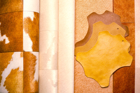 Luxury leather samples close-up. Can be used as background. Industry background.