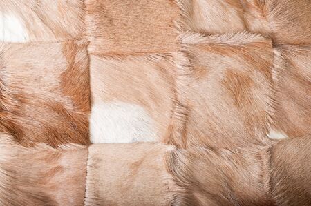 Cattle animal leather skin hides closeup abstract background detail of cleaned treated together to make fur rug carpet decor lifestyle living interior.