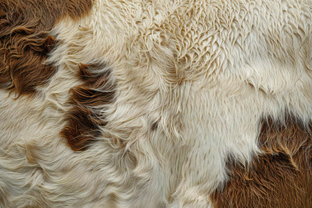 Clean white and brown coat of hair on a cow, leather selection for fabric textile fashion industry, Texture background, Home decoration wallpaper
