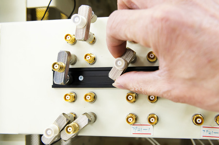Closeup green panel of television equipment at a telecentre. Motion picture and television production concept. Studio Concept