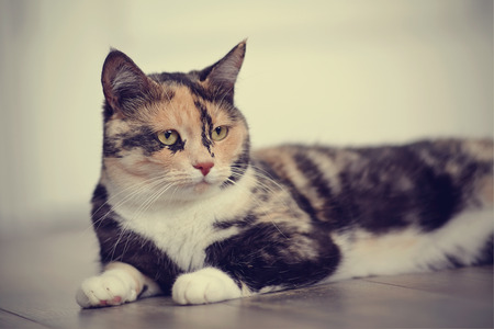 Calico cat in soft tone vintage filter effect