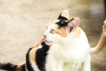 Cute cats are looking daytime in the house using wallpaper or background. for animal
