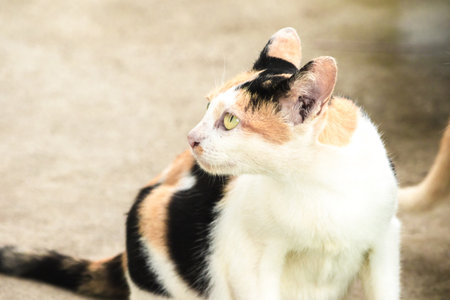 calico cat looking back ,cats are suspicious animals