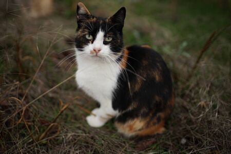Cute cat in the garden. Select focus. Animal.
