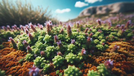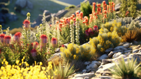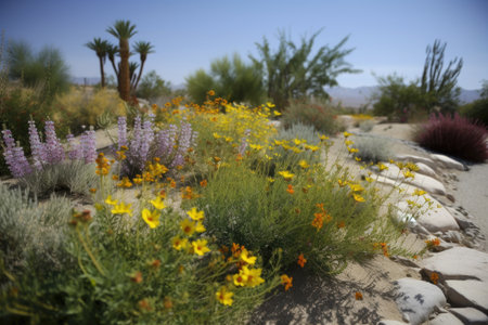 drought-tolerant and native plants thriving in the harsh conditions of a desert, created with generative ai