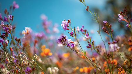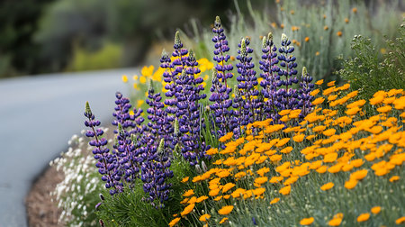 Blooming wildflowers in a scenic landscape roadside view nature photography vibrant colors spring season