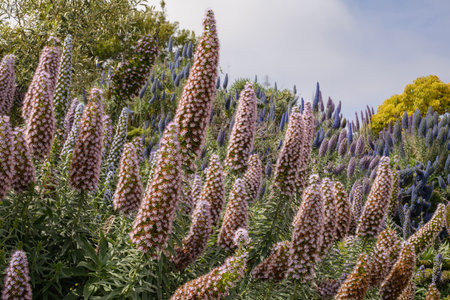 Conical flower spikes of Echium candicans commonly known as Pride of madeira